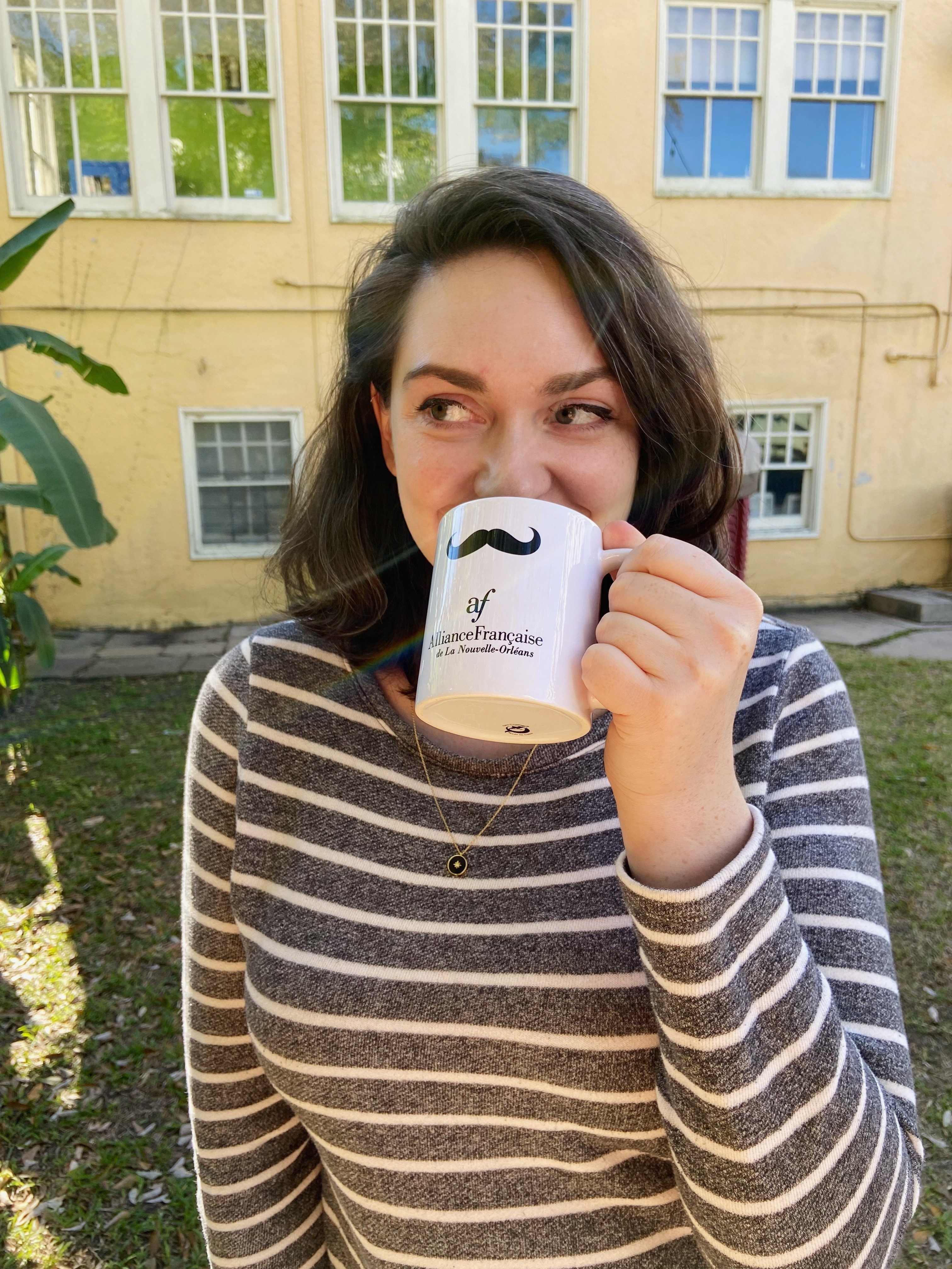 The mustache is emblematic of the French. Enjoy your coffee, tea, or wine (we don't judge) while supporting the Alliance Française!