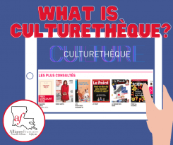 On November 11, Joseph from the Alliance Française of New Orleans will host a webinar via Zoom explaining how to sign up for your free Culturethèque account, and how to use its many features. Participants to the webinar, who are not yet Alliance Française members, will gain a free trial period of one month to Cuturethèque to test out its features.