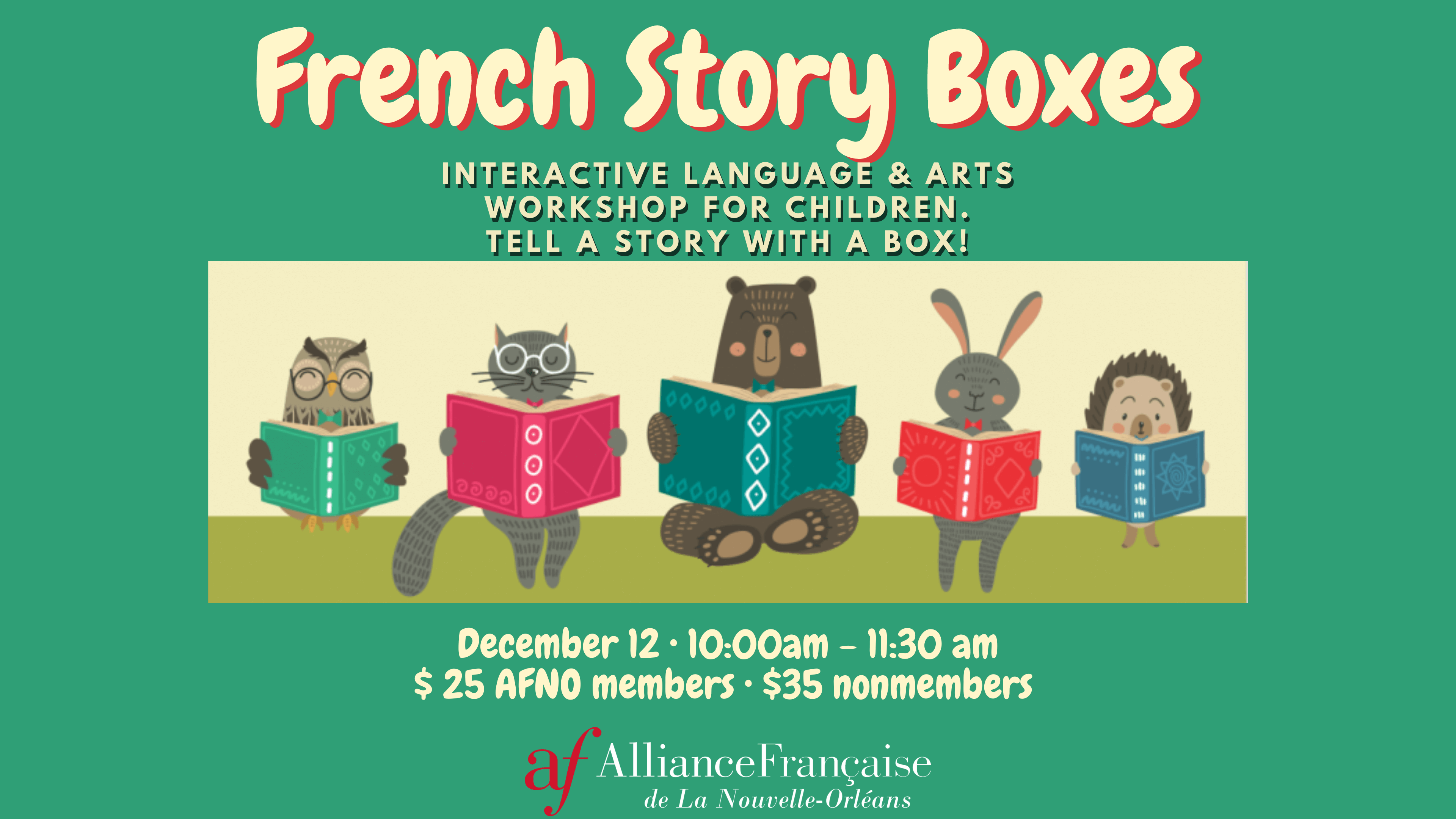 This interactive workshop will teach children to create a story box based on a particular story which they can then explain in French to their friends, family, or teachers. This workshop will be equally linguistic, artistic, and cultural.