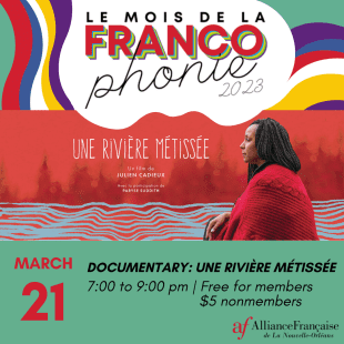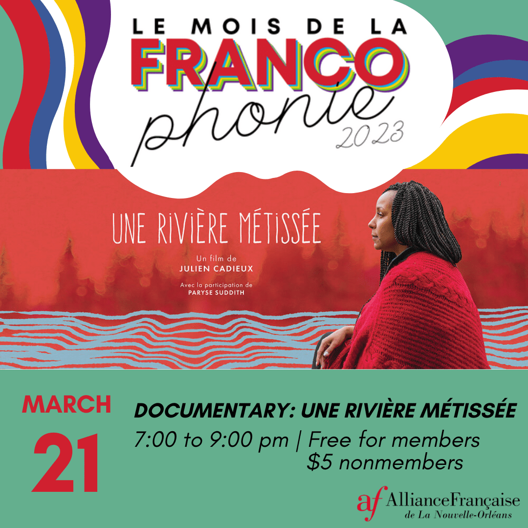In celebration of March being Le Mois de la Francophonie (Francophone Month) we're screening the Canadian documentary, Une rivière métissée. The event will take place at the AFNO, but space is limited, so register in advance! The film will have English subtitles, therefore all learners are welcome !