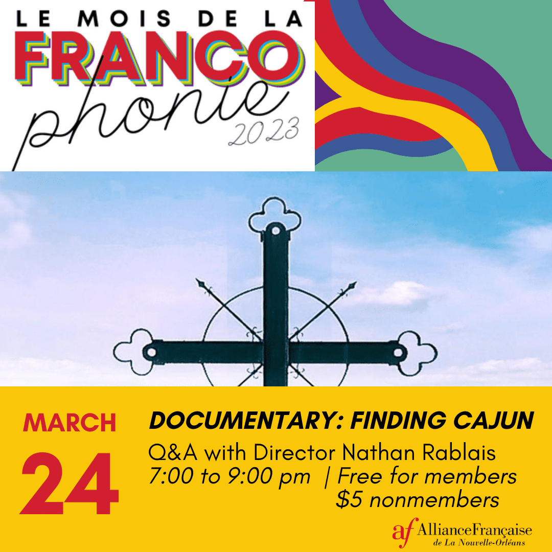 In celebration of March being Le Mois de la Francophonie (Francophone Month) we're screening the Louisianian documentary, Finding Cajun. The event will take place at the AFNO, but space is limited, so register in advance! The film was produce in both French and English, and thus, will have French/English subtitles when appropriate. Therefore all learners are welcome !