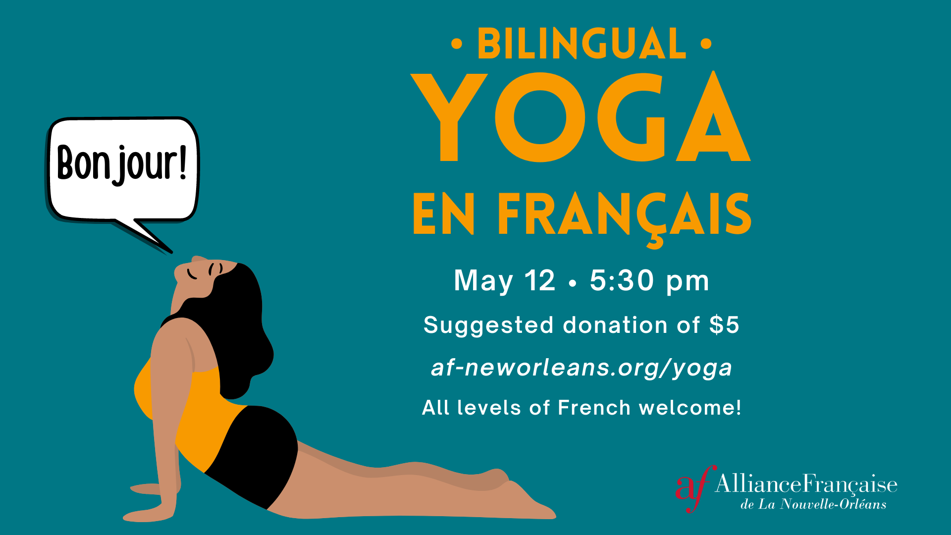 Bienvenue to our Bilingual Yoga with Instructor Kim Nicole!Join us for a relaxing and fun-filled experience that combines the benefits of yoga and the beauty of the French language. Our bilingual yoga class is open to all ages and levels, making it a great opportunity for families and individuals to bond, destress, and learn a new language. Kim Nicole, our certified yoga instructor, will lead the session with a series of yoga postures, breathing exercises, and relaxation techniques, all while integrating the French language. You'll not only feel rejuvenated and refreshed, but also learn useful French vocabulary and expressions that you can use in your daily life.No prior experience in yoga or French is necessary. Whether you're a beginner or a seasoned practitioner, our class is designed to meet your needs and enhance your well-being.