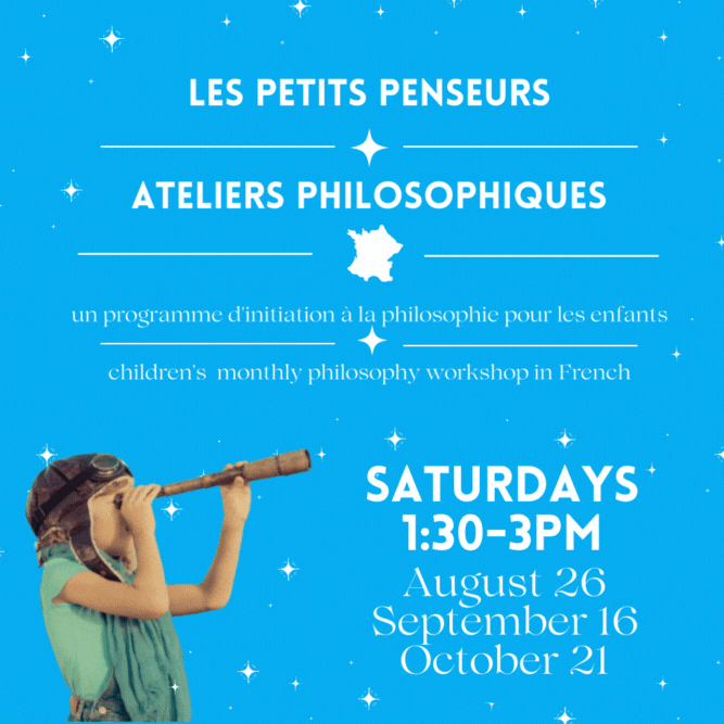 Calling all young thinkers, ages 6-9 years old! Put on your thinking caps and step into the world of philosophical exploration with our popular children's philosophy discussion group, entirely en français. Get ready to delve into life's greatest mysteries, practice your French, and make new friends along the way.