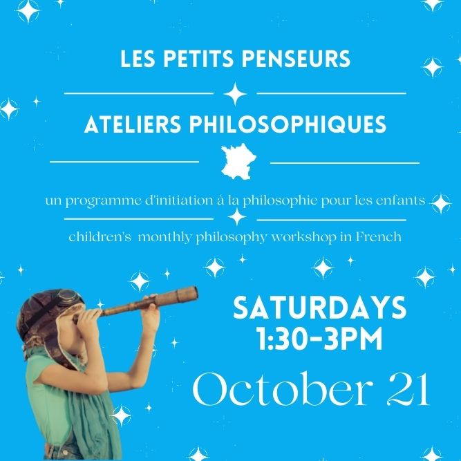 children's philosophy discussion group, entirely en français. Get ready to delve into life's greatest mysteries, practice your French, and
