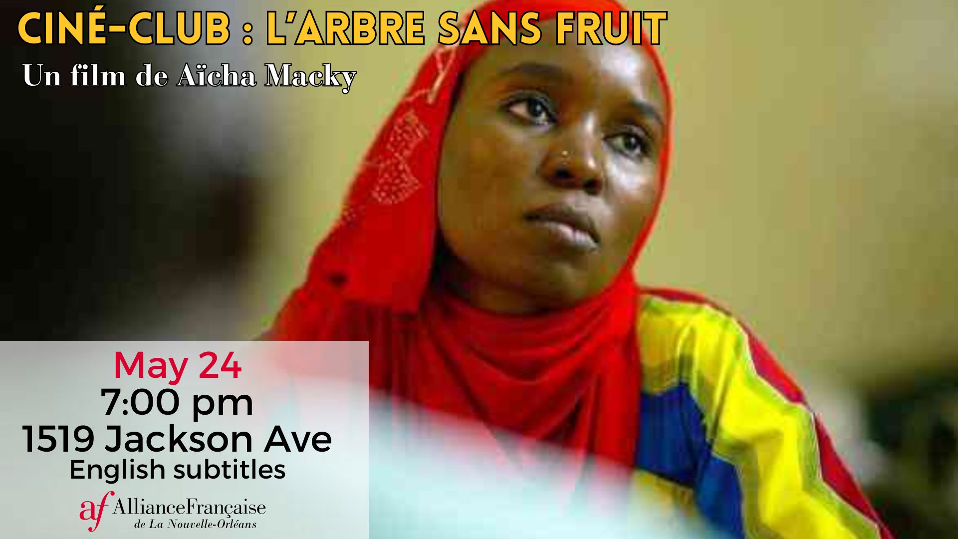 Join us for an enlightening cinematic experience at our next Ciné-Club on May 24th at 7pm, featuring the thought-provoking film "L'arbe sans fruit"