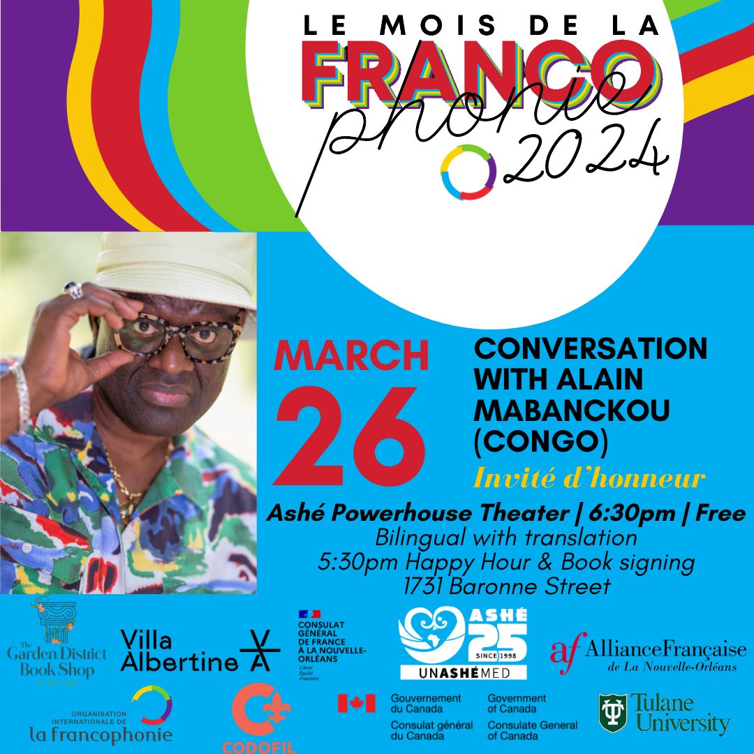 Alain Mabanckou was born in Congo in 1966. An award-winning novelist, Man International Booker Prize finalist, poet, and essayist, Mabanckou lives in Los Angeles, where he teaches literature at UCLA. He is the author of ‘’African Psycho’’, ‘’Broken Glass’’, ‘’Black Bazaar’’, and ‘’Tomorrow I’ll Be Twenty’’, as well as ‘’The Lights of Pointe-Noire’’and ‘’Black Moses’’. Among his many honors are the Académie Française’s Grand Prix de literature, awarded in recognition of his entire literary career, and the 2016 French Voices Award for The Lights of Pointe-Noire, which was described by Salman Rushdie as “a beautiful book.” Mabanckou is a Chevalier of the Légion d’honneur, was a finalist for the 2015 and 2017 Man Booker International Prize, and has been featured on Vanity Fair’s list of France’s 50 most influential people. In September, Alain Mabanckou published “Lettres à un jeune romancier sénégalais” (Letters to a young Senegalese novelist) – Editions Le Robert, as well as “Notre France Noire” (Our Black France) in collaboration with Pascal Blanchard and Abdourhaman Waberi (Editions Fayard).