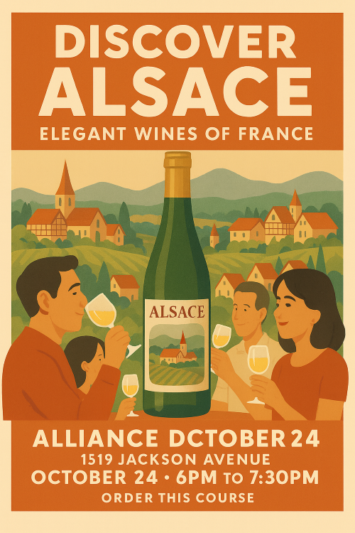 Join us for an intimate seminar exploring one of France’s most distinctive wine regions—Alsace. From its charming villages to its sun-soaked