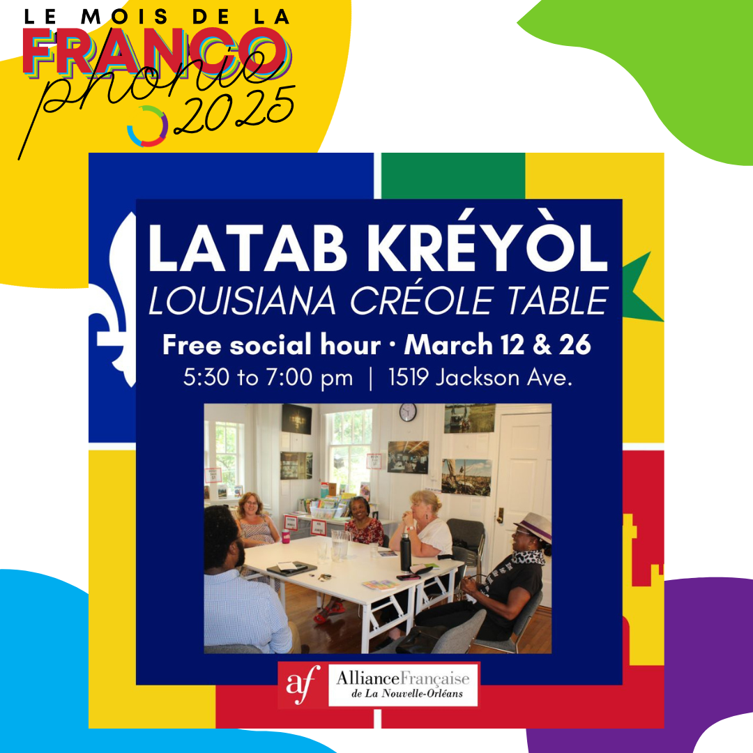 Join us for this free social and conversation hour when you'll be able to practice your Louisiana Créole. Feel free
