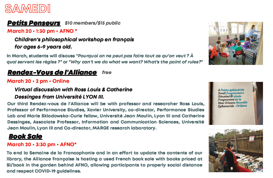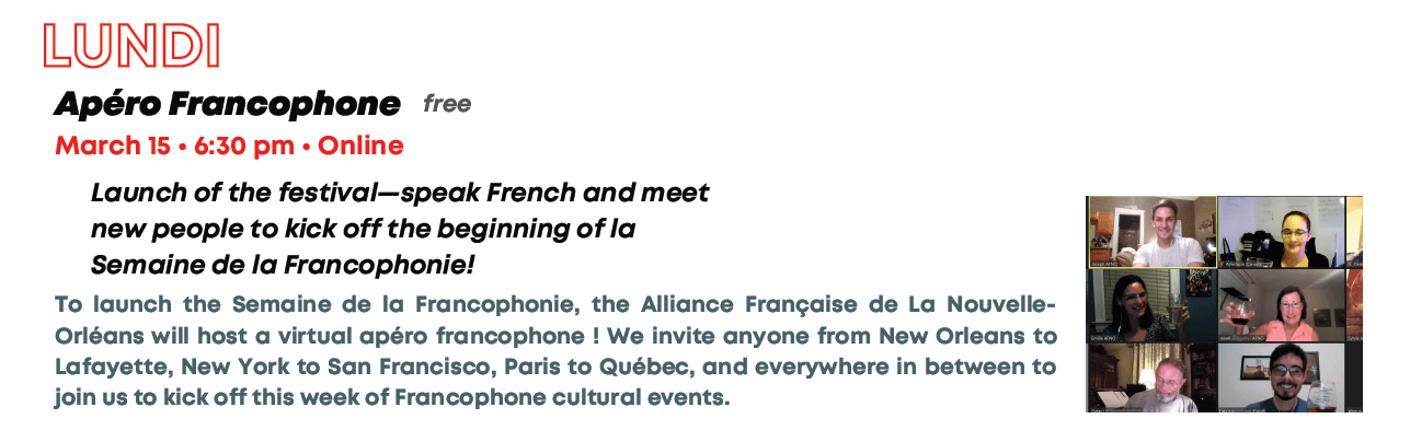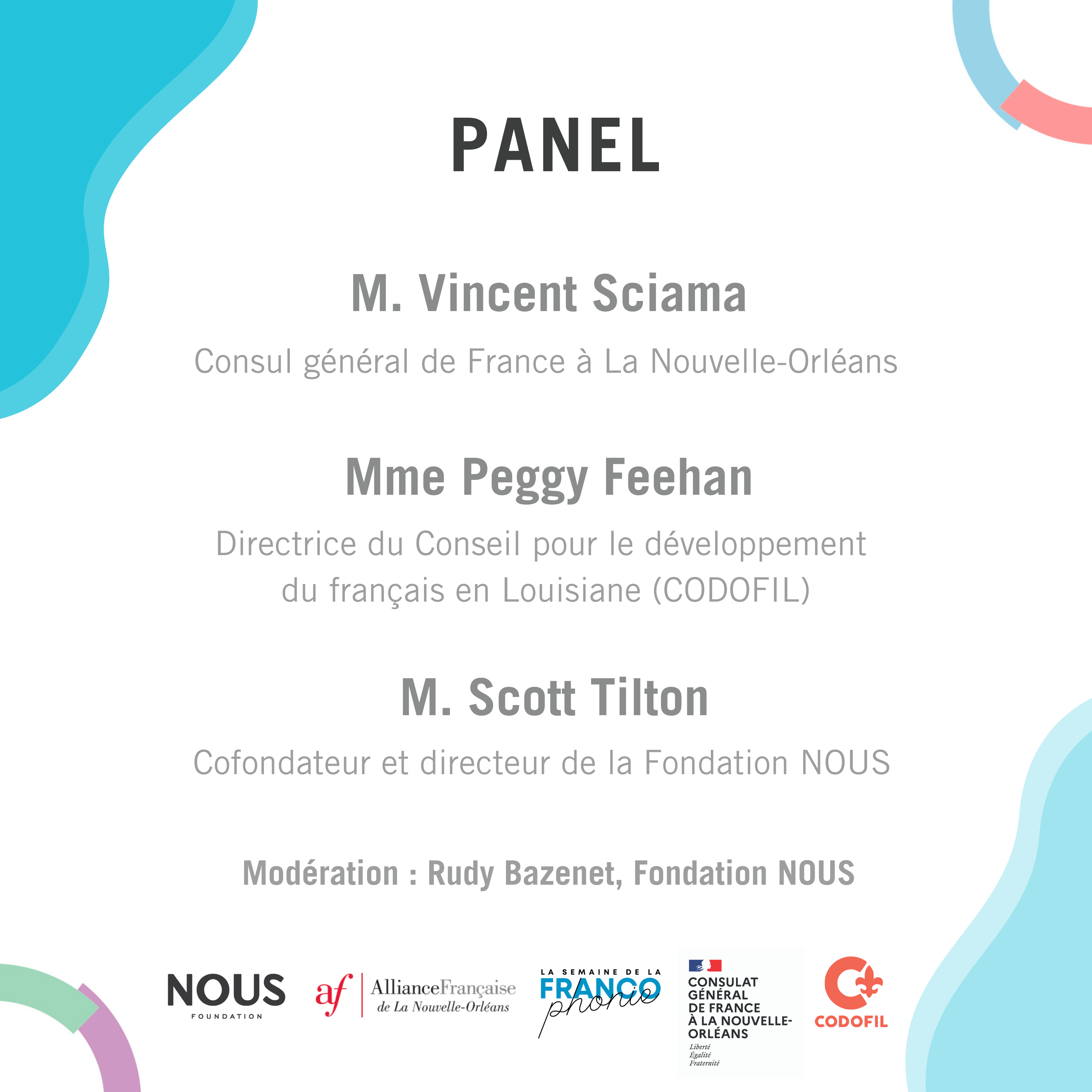 l’Université de Tulane, l’Institut Français, le Consulat de France en Louisiane, l’Institut international de la Francophonie et le Centre
