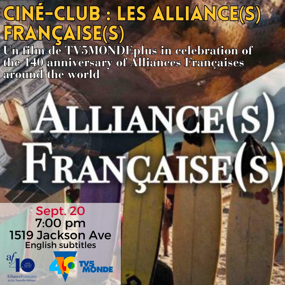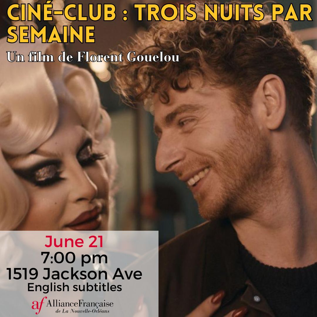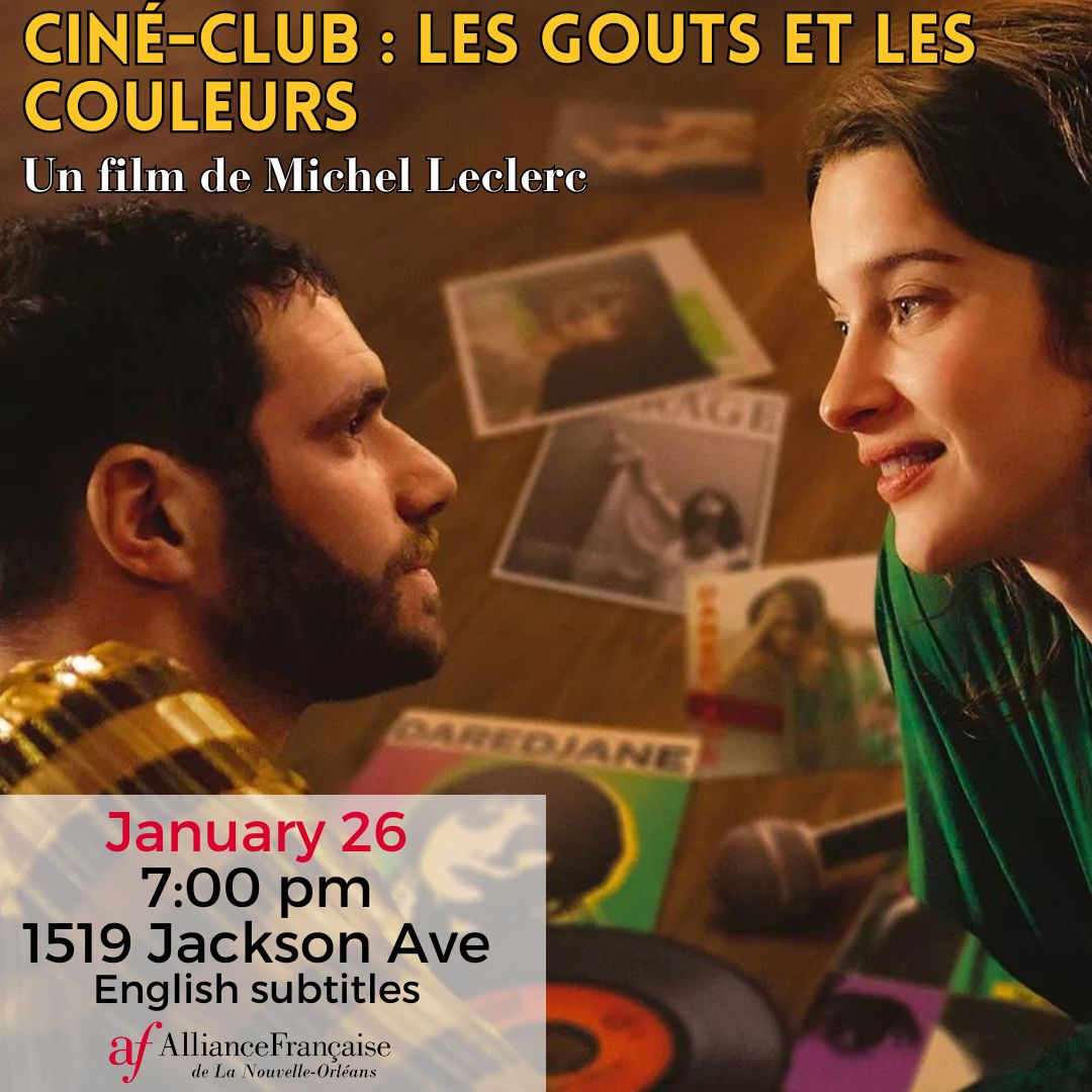 Welcome to Ciné-club, our monthly screening of French or francophone films. It is the ultimate destination for French and francophone film enthusiasts! Immerse yourself in the world of cinema as we present monthly screenings of captivating films with English subtitles. Join us in the enchanting ambiance in the AFNO backyard, where we bring the magic of cinema to life, en plein air. Mark your calendars for the third Friday of every month and get ready for an unforgettable cinematic experience. Explore the rich and diverse world of French and francophone cinema right here in New Orleans. Don't miss out on this unique opportunity to indulge in the artistry, storytelling, and cultural nuances of these exceptional films. Join us at Ciné-club and let the silver screen transport you to new horizons. Discover, engage, and fall in love with the captivating world of French and francophone cinema.