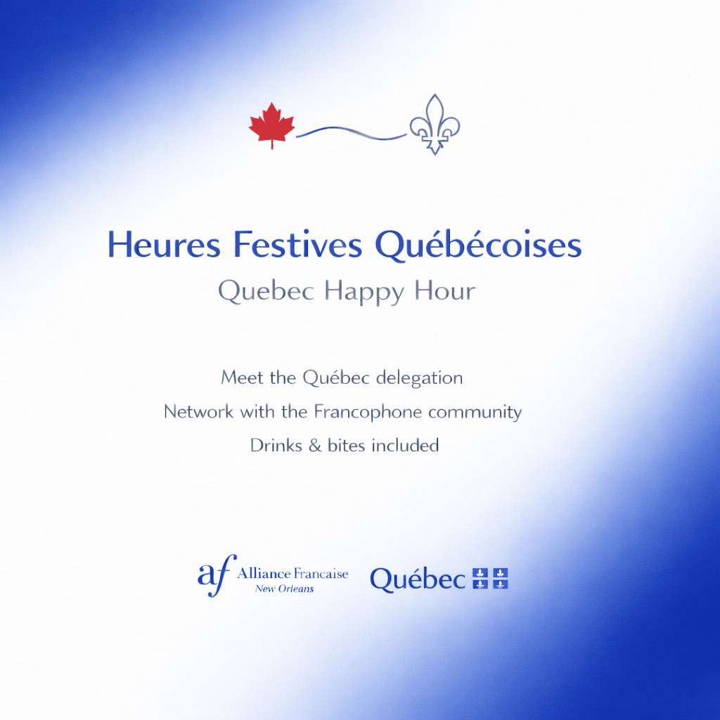 Join us for a Quebec Happy Hour at the Alliance Française de La Nouvelle-Orléans, organized in partnership with the Québec