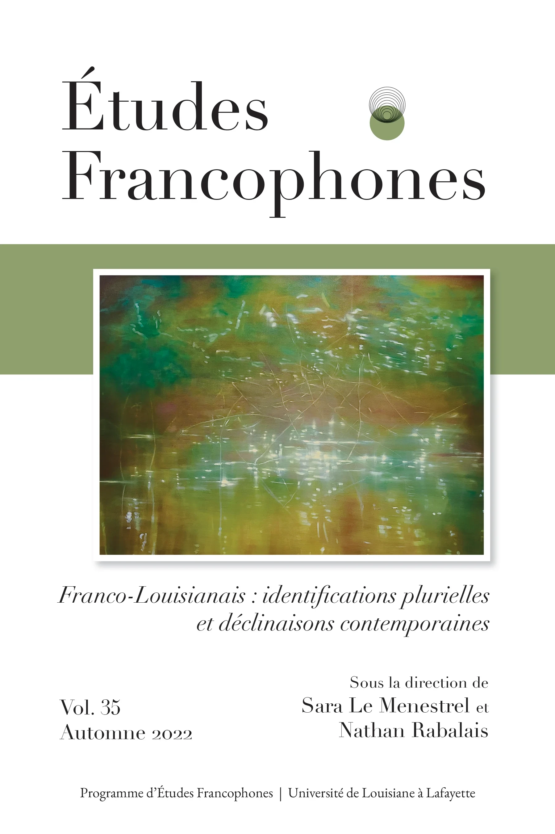 Fondée en 1986 par l’Université de Louisiane à Lafayette, la revue Études Francophones (anciennement Revue Francophone de Louisiane,
