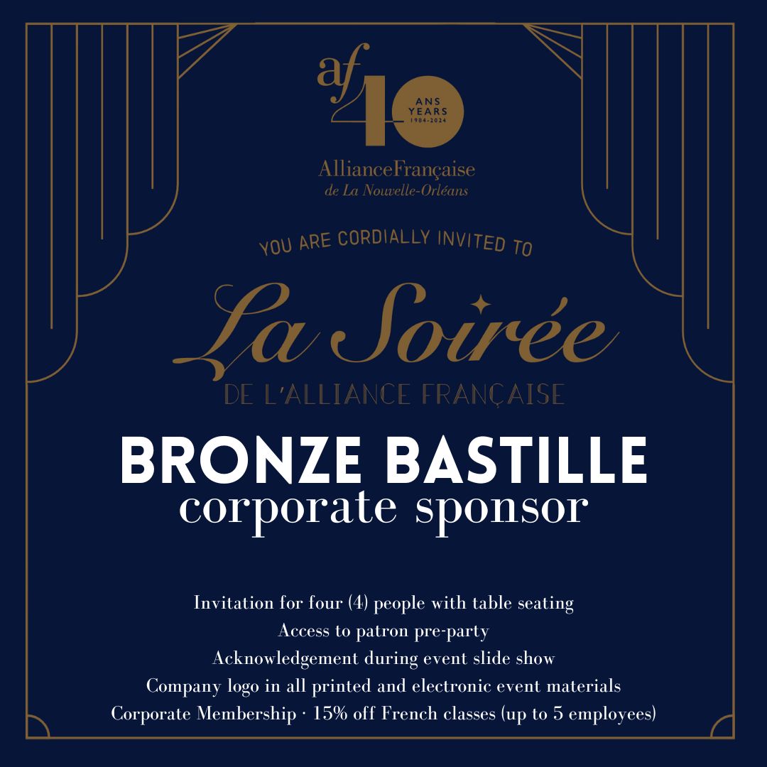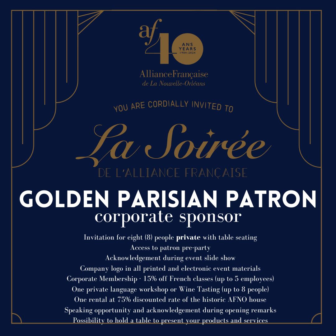 Note: Your presence and support contribute to the continued success of the Alliance Française de la Nouvelle-Orléans.